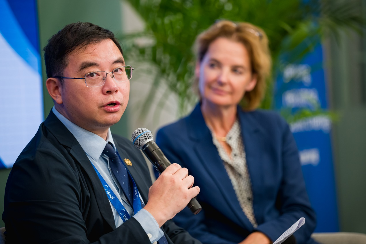 在“通往2030年的路线图及可持续发展政策未来”专题对话环节,姚歆秘书长与欧洲议会议员、欧洲议会内部市场与消费者保护委员会主席Anna Cavazzini,欧盟委员会内部市场、工业、创业与中小企业总司副司长兼负责任商业行为处处长Amaryllis Verhoeven,全球贸易协会(amfori)总裁Linda Kromjong,以及欧洲企业社会责任协会(CSR Europe)总干事Stefan Crets共同参与交流。
