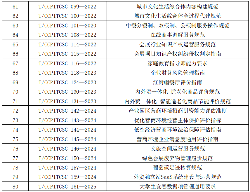 中国贸促会商业行业委员会积极承担贸易促进领域标准化工作职责,截至目前,已发布173项团体标准。为保护知识产权,同时让各相关方便捷、合规获取标准文本,若您有以下团体标准文本获取需求,欢迎直接与我们联系。